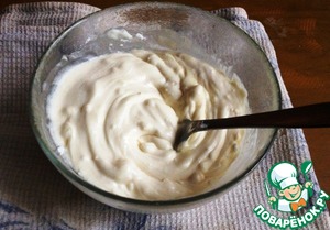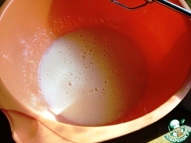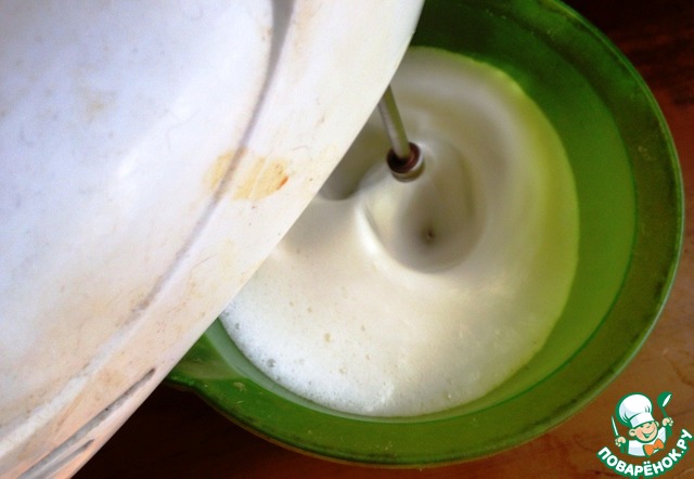 Желтки взбить с оставшимся сахаром до однородной, побелевшей массы.