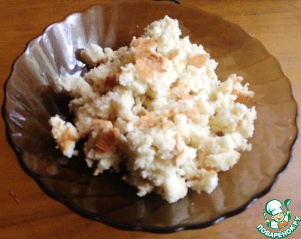 Срезать корочку. Оставляя стенки толщиной 1 см и не повреждая дна выбрать мякиш.
