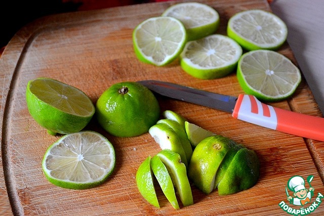 Нарезаем на ломтики лаймы, откладываем в сторонку 5 ломтиков для украшения