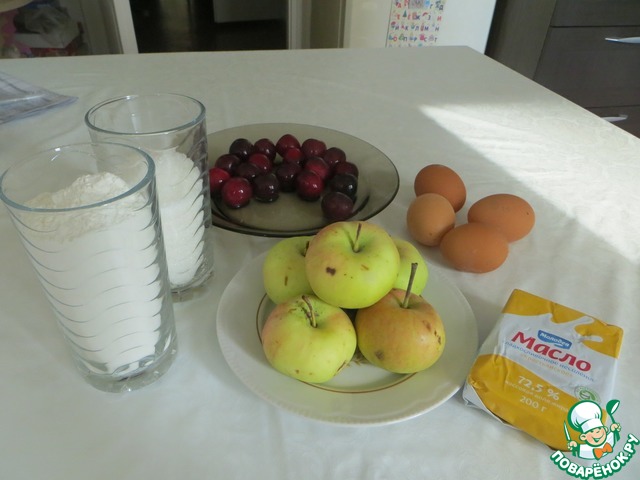 Ингредиенты для «Шарлотка с яблоками и сливами»:
