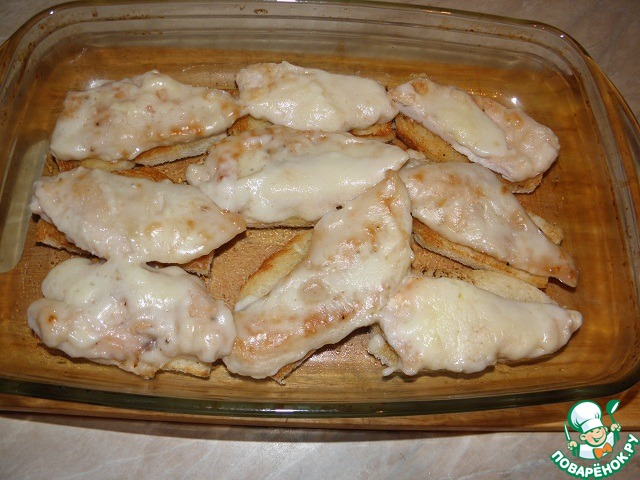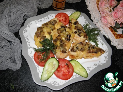 Друзья, медальоны сегодня в меню! Калории очень считать не люблю! Побаловать можно себя иногда! А выручит блюдо такое всегда! Курица нежная, соус молочный! С сыром, грибами понравится точно! Гренки хрустящие так хороши! Сливочно, сочно и все для души!