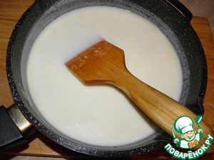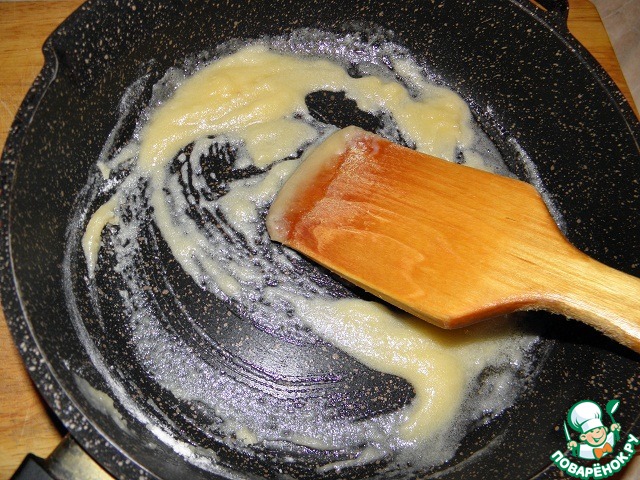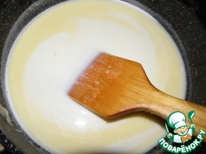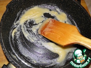 Для соуса: Слегка поджариваем муку на сливочном масле, не зарумянивая.