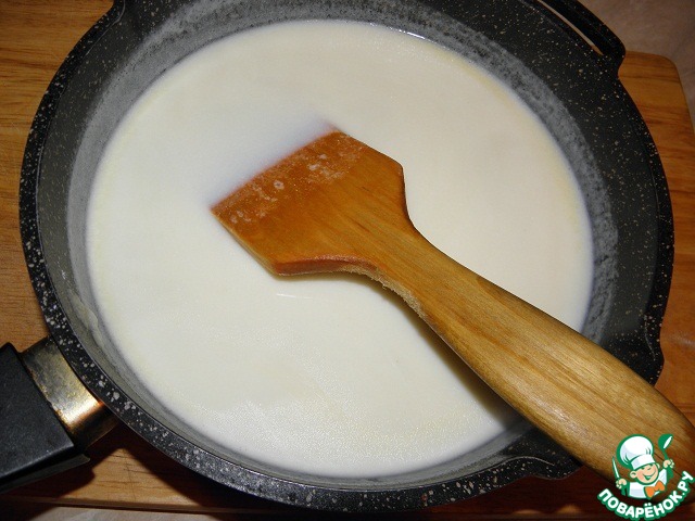 Заливаем молоком и быстро размешиваем, чтобы не было комочков.