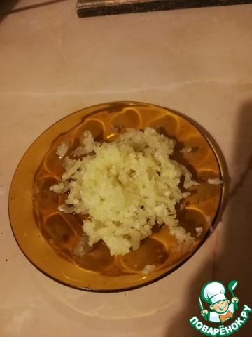 Пропускаем чеснок через чеснокодавку. |