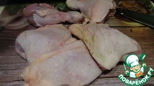 Окорочка помыть, разрезать на порционные куски.