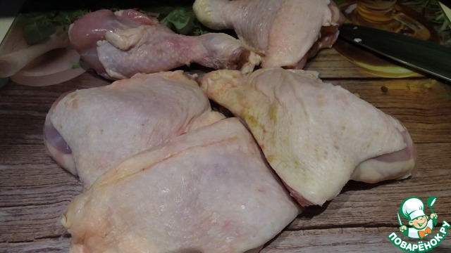 - Курица (окорочка или бедра) — 800 г