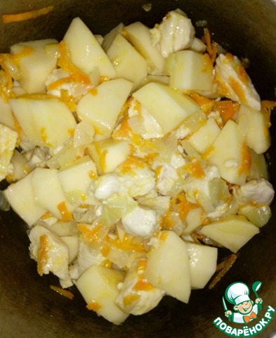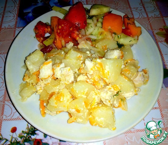 Рецепт «Тушеный картофель с курицей в сметане»: