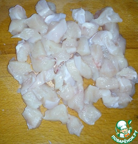 Мясо нарезаем небольшими кусочками.