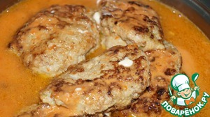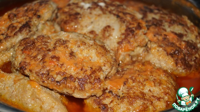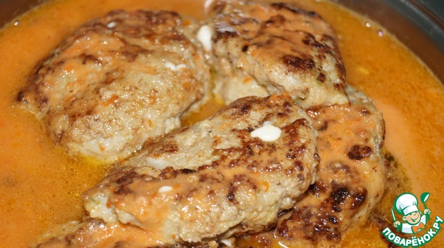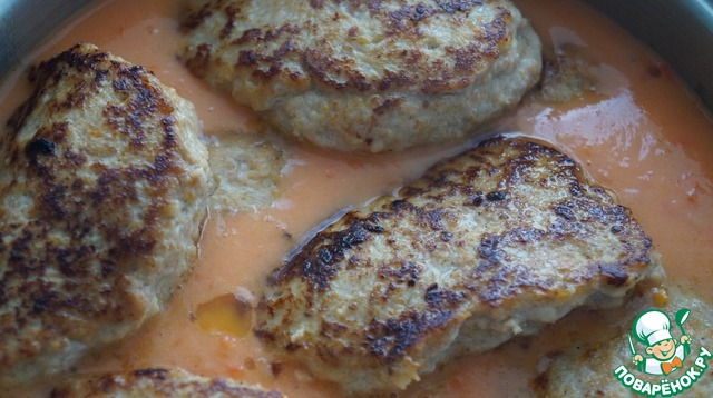 Заливаем котлеты так, чтоб при кипении наш соус не выливался на плиту, не брызгался.