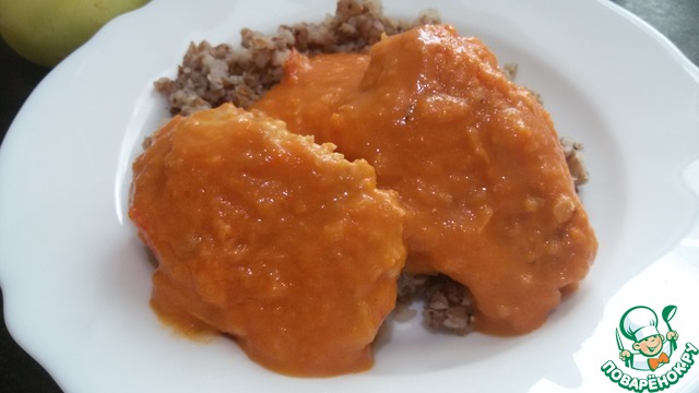 Готовые складываем в эмалированную кастрюльку или кастрюльку из нержавейки. Затем заливаем соусом.