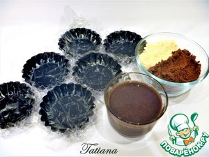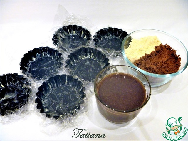 Формочки -корзиночки оберните пищевой пленкой.