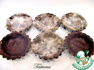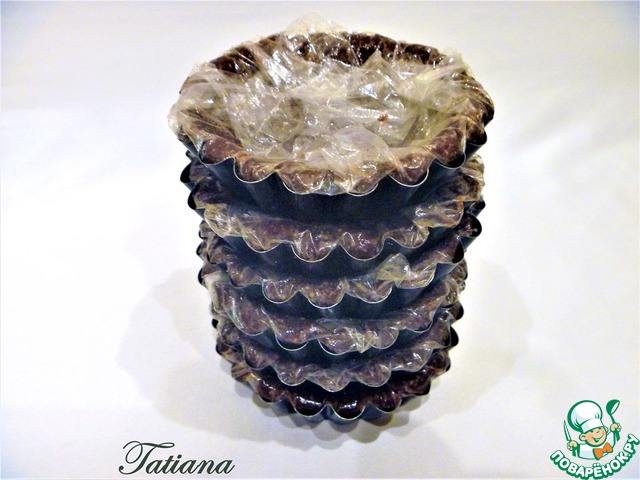 Получившуюся массу (360 г.)поделите по количеству формочек, выложите в каждую корзиночку, хорошо утрамбовывая.