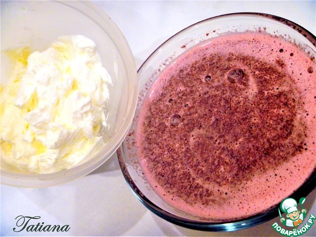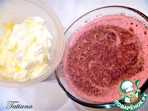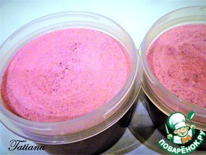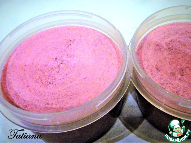 Как только желтково-ягодная смесь начнет!!! слегка!!!"похрустывать" от заморозки, взбейте холодные жирные сливки, аккуратно (силиконовой лопаткой) вмешайте взбитые сливки в ягодную смесь.