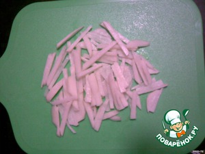 Картошку режу тонкой соломкой, бросаю в кипящую воду, убавляю огонь до слабого кипения