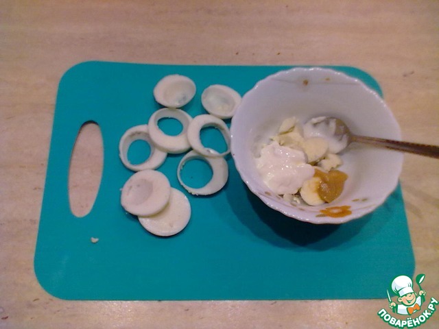 - Яйцо куриное (вареные, в зависимости от размера) — 2 шт