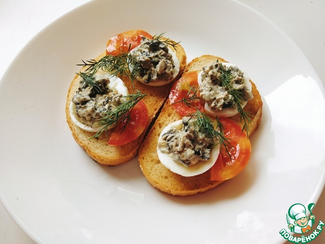 Ингредиенты для «Бутерброды с грибами и яйцом»: