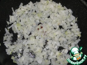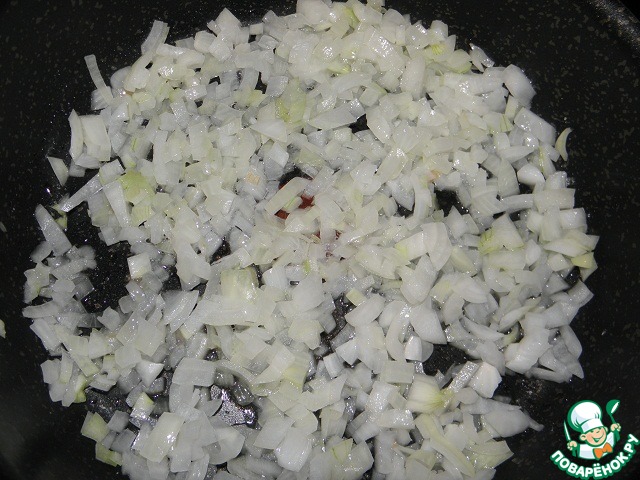 Мелко нарезаем лук, слегка обжариваем его до прозрачности в небольшом кол ве раст масла