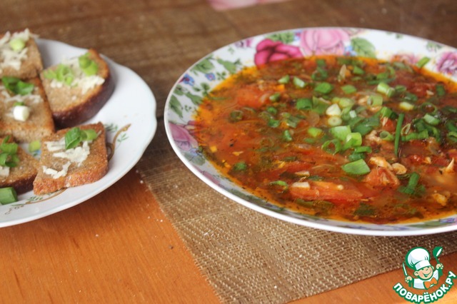 Лето - это изобилие свежих и вкусных овощей. Томаты, перец, зелень. Все вкусное, свежее. Предлагаю Вам рецепт супа, где первую скрипку играют томаты. Супчик остренький, ароматный и сытный.