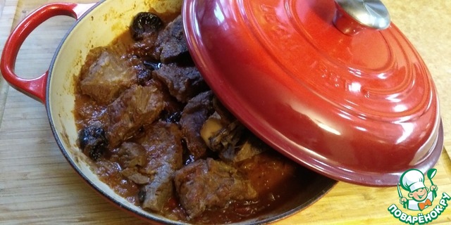 Мясо, тушенное в вине с овощами