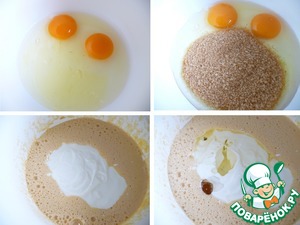 Яйца взбить с сахаром до пышного состояния.