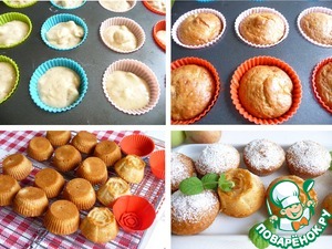 Приостывшие кексы посыпать сахарной пудрой.