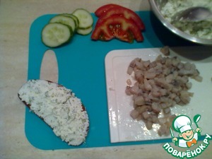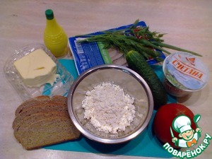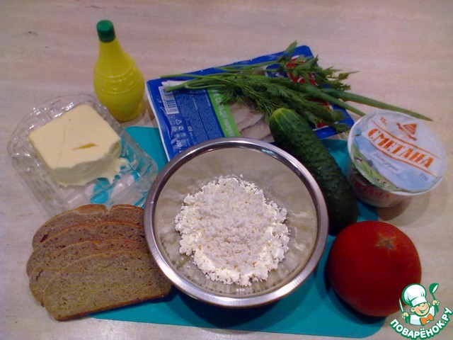 Ингредиенты для «Бутерброды с творогом, сельдью и овощами»: