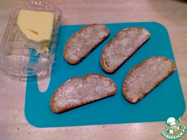 Хлеб смазать тонким слоем сливочного масла с двух сторон