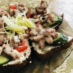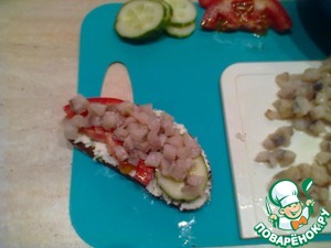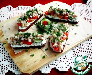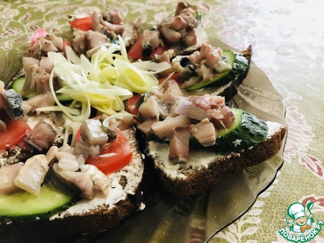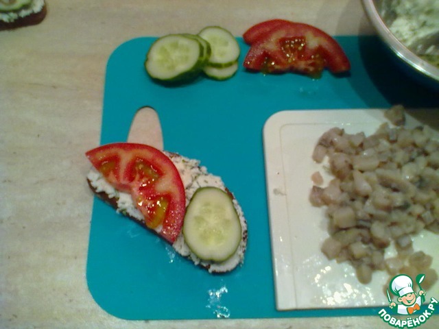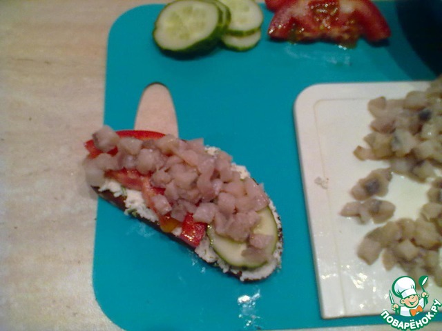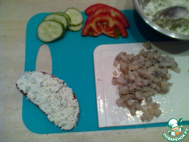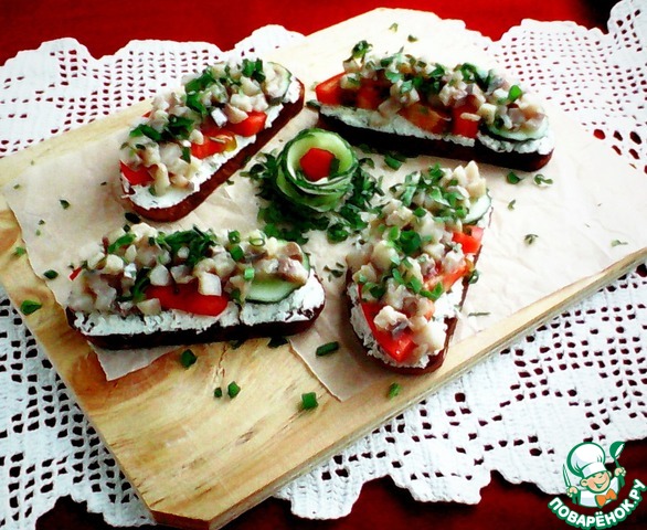 Рецепт «Бутерброды с творогом, сельдью и овощами»: