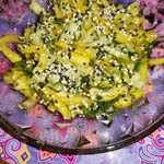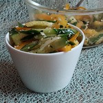 [+5]Вместо кинзы - укроп (не хотелось в магазин бежать), кунжутное масло заменила, по совету автора, оливковым, остальное по рецепту.
