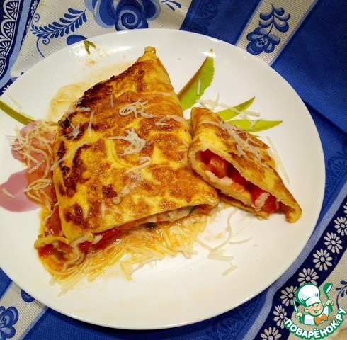 Накрыть крышкой и поджарить ещё пару минут. Свернуть омлет пополам, поджарить до красивой румяной корочки и подать к столу, посыпав пармезаном.