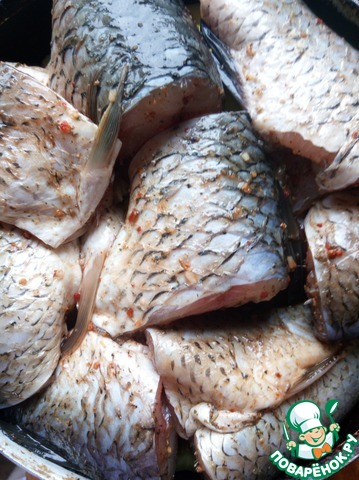 Очень вкусное и ароматное блюдо! Готовили из крупного сазана и амура, но думаю, что любая рыба получится вкусной по этому рецепту.