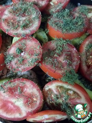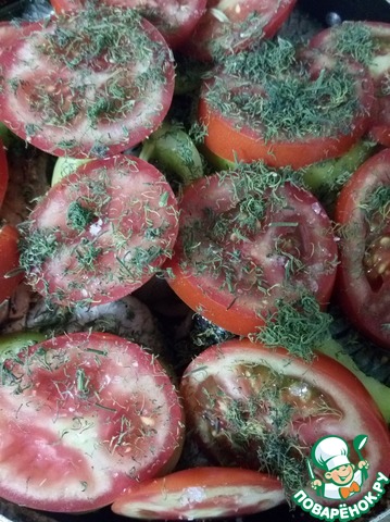 Поливаем сверху растительным маслом, плотно закрываем крышкой и ставим в духовку разогретую до 180° С на 60 минут.
