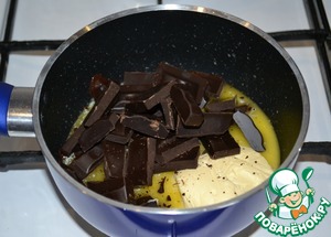 В небольшом сотейнике растопить сливочное масло и шоколад, поломанный на кусочки. -