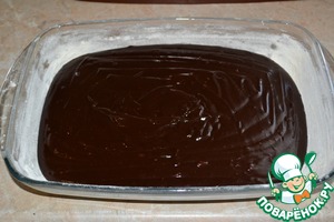Топпинг слегка остудить, покрыть им остывшую шоколадную основу прямо в форме. Дать топпингу полностью остыть. Он не будет сильно горячим, поэтому я ставлю форму в холодильник на полчаса.