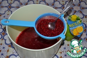 Перетереть массу через мелкое сито, добавить сок лимона с мятой и поставить на огонь.