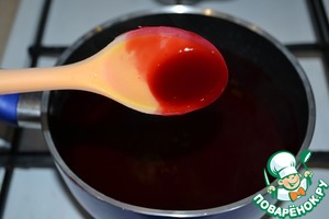 В холодной кипячёной воде развести крахмал, влить его тонкой струйкой в малиновую смесь. Непрерывно мешая ложкой, варить топпинг до лёгкого загустения.