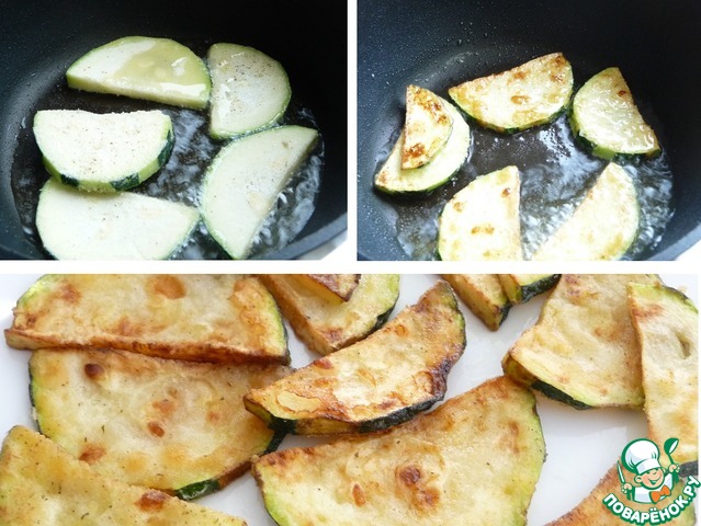 Цукини помыть, обсушить, я немного почистила (получилась зебра) и нарезать полукольцами (если крупный).