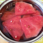 Горячим (но не кипятком!) можно заливать дольки арбуза.