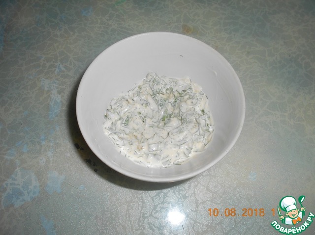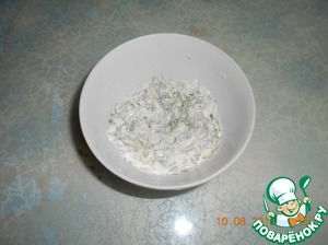 • Смешать майонез, сметану, горчицу, чеснок, зелень, соль по вкусу- это соус для конвертиков.