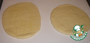 Приготовить тесто. Дать постоять 30 минут. Разделить на 4 части. Раскатать на пласты толщиной 0,5 см. Смазать пласты оливковым маслом. Дать постоять еще 20 минут.