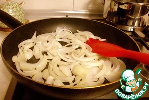 • В сковороду налить масло, нагреть и слегка обжарить лук.