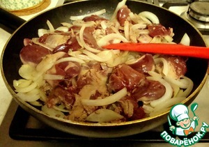 • Добавить к луку печень. Перемешать и довести её до состояния " посветления".