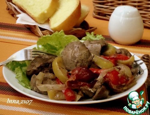 Предлагаю приготовить тушеную куриную печень с яблоками и сливой. В этом рецепте, на мой взгляд, удачно сочетается печень с фруктами и овощами.