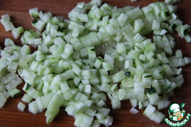 Добавить нарезанные кубиком огурцы.