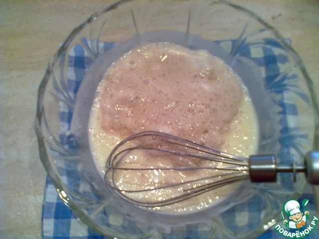 Добавить подошедшие дрожжи. Вот как они хорошо подошли и образовали пенную массу! Хорошо перемешать