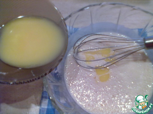 Сливочное масло заранее растопить, остудить и влить в миску к общей массе. Перемешать.
