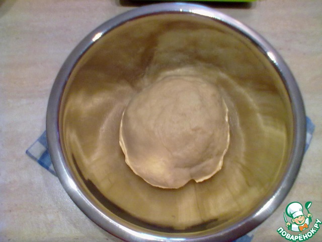 Тесто подкатать в шар, прикрыть и убрать в тёплое место для подъёма от 1 до 2 часов. Все будет зависеть от того, как работают дрожжи. У меня подходило 1,5 ч. и увеличилось в 2 раза.