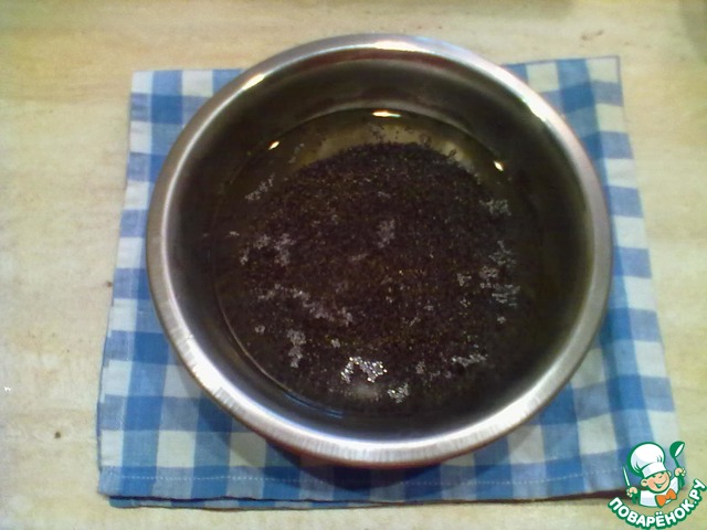 Мак залить крутым кипятком, накрыть крышкой и оставить от 20 мин. до 1 часа, чтобы упарился и набух. -