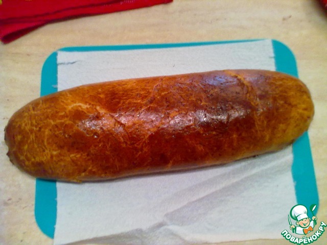 Переложить на противень, смазанный раст. маслом швом вниз. Убрать на расстой в тёплое место, прикрыв, на 15 мин.