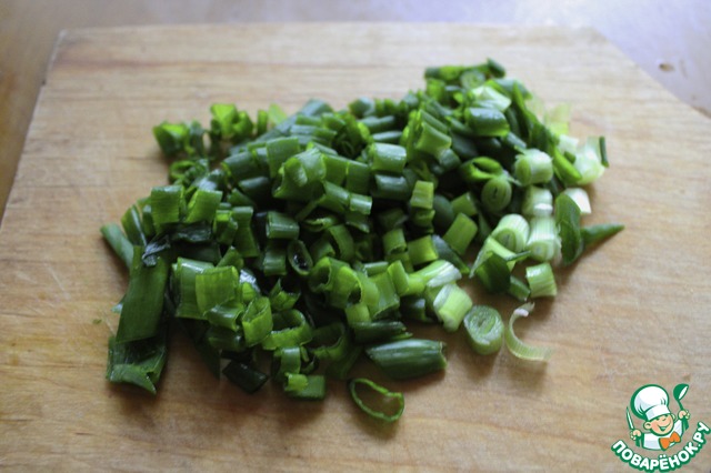 Зелёный лук измельчить. Я измельчаю сразу на всех, кто будет есть.